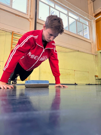 Ребята из 10-11 классов продемонстрировали свою силу в отжиманиях, упражнениях на пресс, прыжках с места и наклонах вперёд.